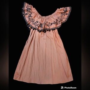 Umgee Med Embroidered off shoulder ruffle black pompom trim