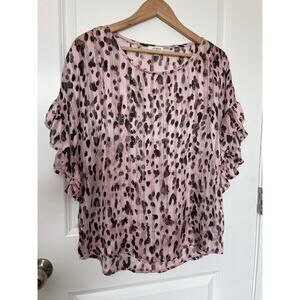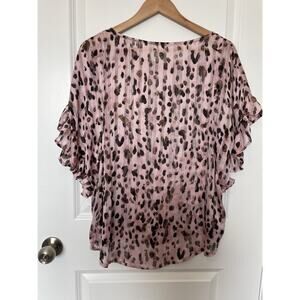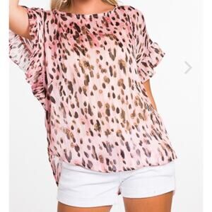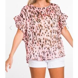 Umgee Metallic Cheetah Print Pink Brown Gold Ruffle Boho Glam Top Size Small