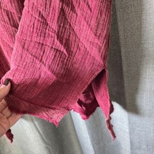 Umgee Mineral Wash Gauze Tunic Top V Neck Wine Red Size L Short Sleeve