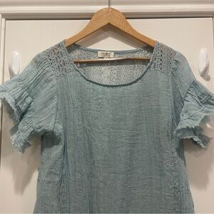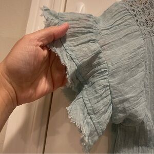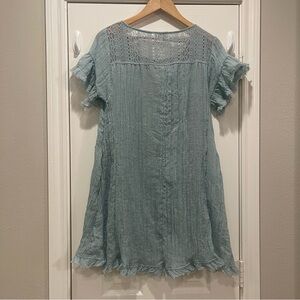 Umgee Mini Dress Women’s Medium Light Blue Gauzy Cotton Blend Lace Crochet Boho