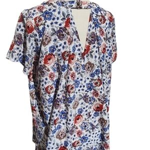 Umgee Dress Tunic White With Multicolor Floral Print Small. Lightweight, thin, keyhole neckline, hand wash
