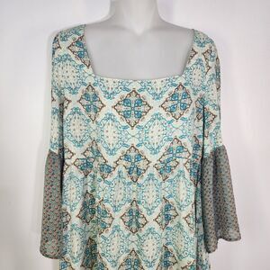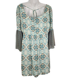 Umgee Mini Tunic Dress Small Boho Slit Bell Sleeve Empire Waist Square Neck