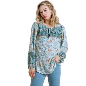Elegant floral blue top with a stylish design. Perfect for any occasion.