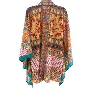 Umgee Mixed Patchwork Scarf Print Chiffon Kimono Size S/M Festival Bohemian