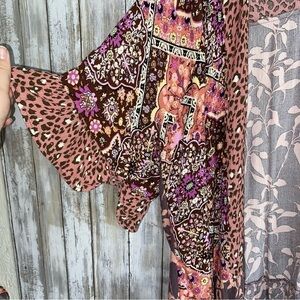 Umgee Mixed Print Floral & Leopard Drape Kimono