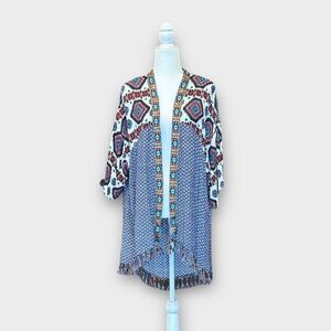 Umgee Mixed Print Tassel Detail Open Front Kimono Wrap Size M/L