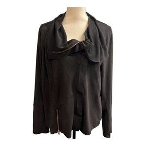 Umgee Moto Jacket 1XL Black Faux Suede Zip Up Asymmetrical Soft Casual Biker