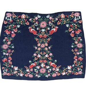 Umgee MultiColor Floral Embroidered Fully Lined Navy Blue Mini Skirt - Sz S