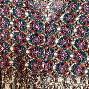 Chic tunic with intricate patterns. Features a mix of colors for a stylish look. Ideal for casual wear.