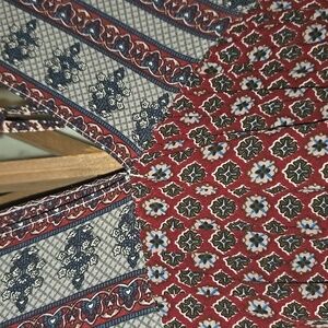 Chic tunic with intricate patterns. Features a blend of blue and red tones. Perfect for casual wear.