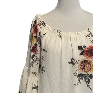 Umgee NEW Off Shoulder Bell Sleeve Top Womens XL Ivory Floral Flowy Boho NWT