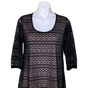 Umgee NWT Black Lace Overlay Mini Dress, Scoop Neck 3/4-Sleeves Women’s Size M
