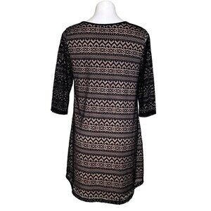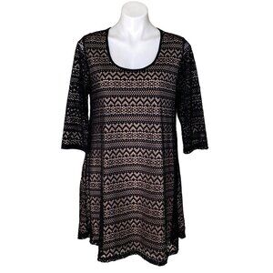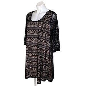 NWT this Umgee Lace Overlay Mini Dress in black features a tan lining with 3/4 sleeves. A perfect addition to any woman's wardrobe, easy to dress up or down.