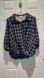 Umgee Navy Cream Plaid Laced Detail High Low Twist Front Button Down Top Medium