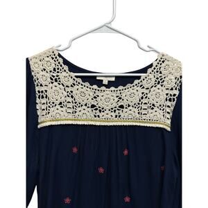 Umgee Navy Crochet Yoke Embroidered Tunic Boho Peasant Dress Size M