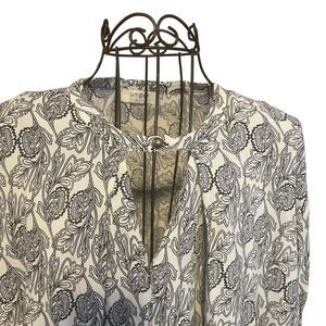 Umgee Navy Floral Pattern Boho Swing Tunic Dress Top Size Large w/Keyhole Neck