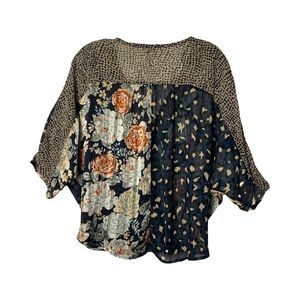 Umgee | Navy Mixed Print Boho Surplice Top, Small