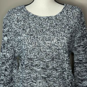 Umgee Navy White Bow Flare Sleeve Open Knit Wave Hem Sweater NWT Size S.