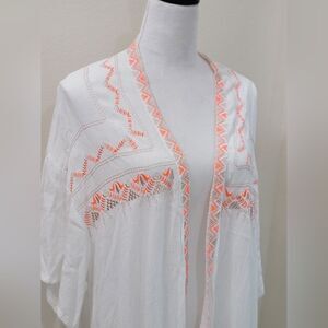 Umgee Neon Embroidered Boho Open Front Flyaway Hi Lo Cardigan W/ Pompon Size M/L