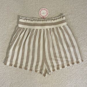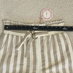 Umgee *New* Striped Shorts Size Medium Cream Beige Cotton Linen Boho Neutral NWT
