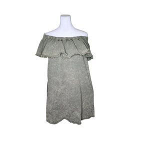 Umgee Off Shoulder Ruffle Denim Mini Dress Womens M Khaki Green