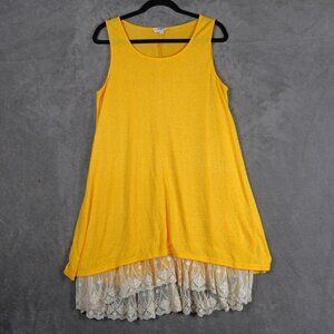 Umgee Oh Me Oh My! Sheer Knit Tank Dress Lined with Lace Trim Boho Large