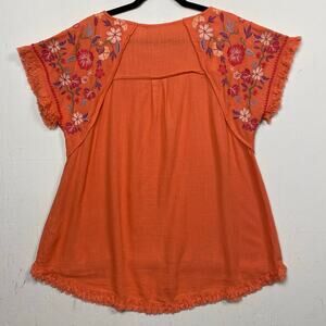 Umgee Orange Embroidered Boho Linen Blend Fairy Lagenlook Top Size Small