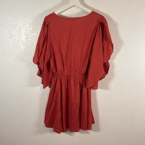 Umgee Orange Floral Embroidered Boho Mini Dress Size Medium