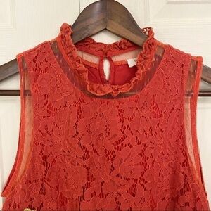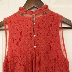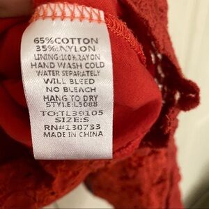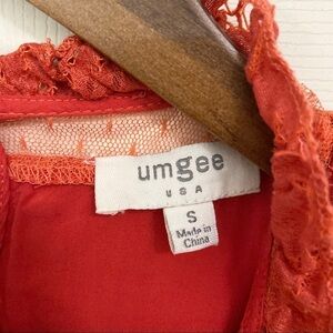 Umgee Orange Lace Floral Embroidered Tunic Blouse