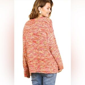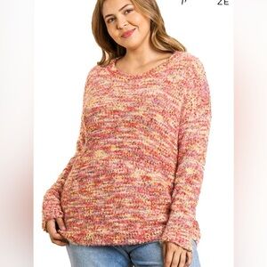 Umgee Orange Yellow Multicolor Boucle Long Sleeve Pullover Sweater L
