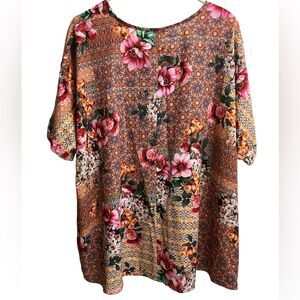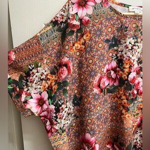 Umgee Oversized Boho Mixed Floral Print Blouse Top SZ M