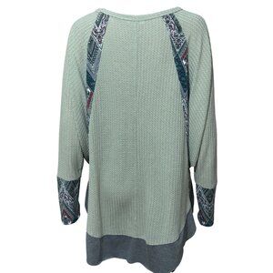 Umgee Oversized Boho Style Grey Top with Patches Size Medium