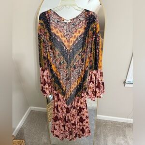 Beautiful kimono style duster sweater. Pattern design with pink, red, blue, orange colors perfect for fall/winter. Only worn a few times and in great condition!