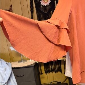 Elevate your style with this elegant coral top featuring chic ruffle sleeves. Perfect for any occasion. UMgee Large