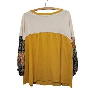 A cute boho mixed media long sleeve peasant sleeve top by Umgee in size medium.