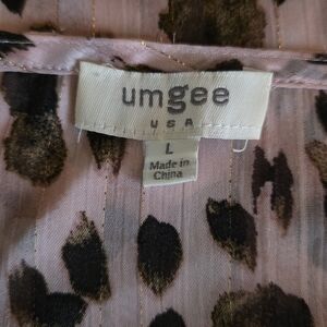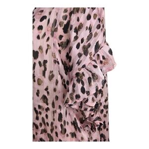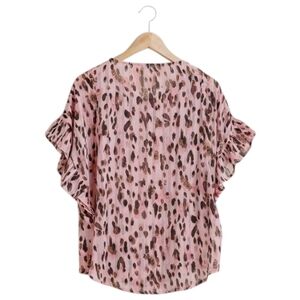 Umgee Pink Metallic Leopard Print Ruffle Sleeve Blouse Size L Sheer Top
