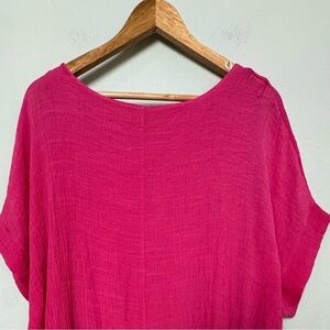 Umgee Plus Pink Short Dolman Sleeve Sheer Lined Rounded Neck Blouse Top Size XL