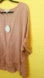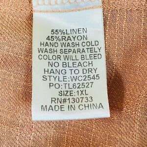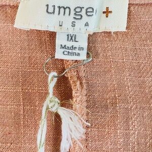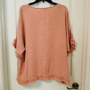 Umgee Plus Size 1X Rose Pink Linen Blend Hi Low V Neck Frayed Hems Tunic