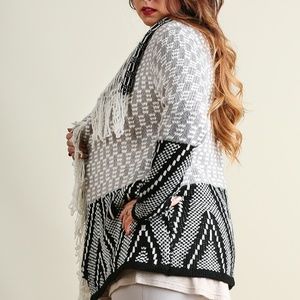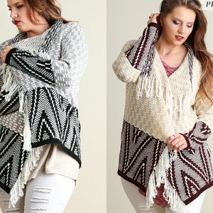 Umgee Top Size 1X Drape Cardigan Western Fringe Waterfall Boho Aztec Womens Sweater Duster