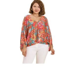 Umgee Plus size Blouse Flowers Dolman Sleeve Size 1X