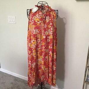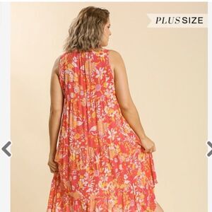 Umgee Plus Size Floral Print Sleeveless Tie Front Midi Dress NWT