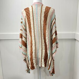 Umgee Open Knit Sweater Poncho Womens Sz Med/Large Pink Blue Brown Ivory Boho Bohemian Open Front Cardigan Drape Crochet Coastal Cowgirl