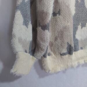 Umgee Pullover Camouflage Camo Gray Cream Soft Fuzzy Sweater