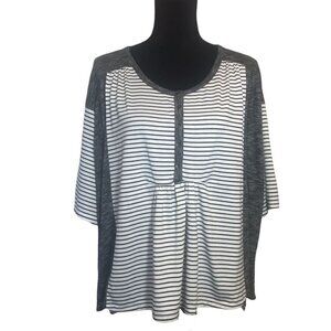 Umgee Pullover Stripe Hi-Lo Top in Gray/Cream - Size Small