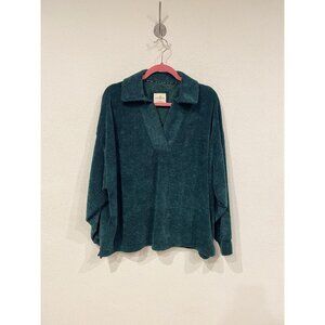 Umgee Pullover Sweater Womens Medium Green Collared Relaxed Fit Textured Knit