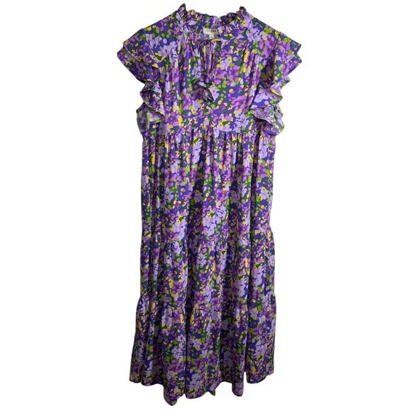 This charming sundress by Umgee showcases a vibrant purple hue with ruffled, tiered layers that add a playful touch. Designed with a crew neck and flutter cap sleeves, it offers a breezy fit perfect for casual or resort wear. The mini length and lightweight fabric ensure comfort and style for any relaxed occasion.