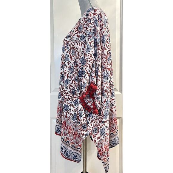 Umgee Red Floral Open Front Kimono Size S/M Tassels July 4