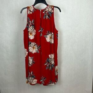 Umgee Red Floral Sleeveless Swing Dress Sz Medium Shift Lined Pleats Mini Spring