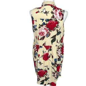 Umgee Red Rose Yellow Sleeveless Button-Down Shirt Dress - Women's Size Large