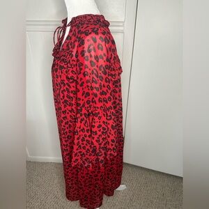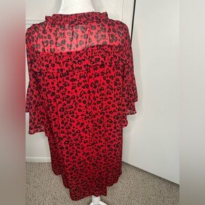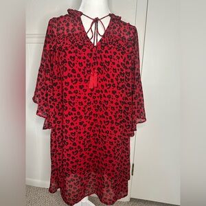 New without tag. No flaws Umgee Chic red dress with black heart print. Features a tie neckline and ruffled sleeves. Smoke free home